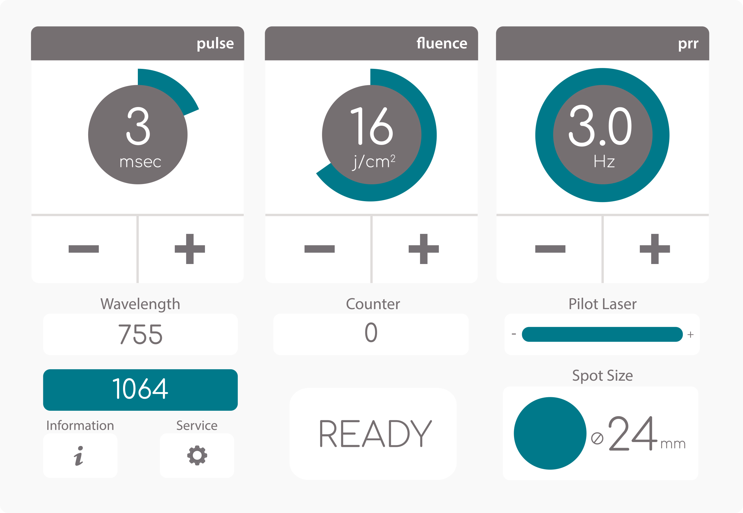 EVOLINE lets you switch seamlessly between spot sizes from 14 to 24 mm without recalibration or changing handpieces or optics — a smart design that saves time and maximizes treatment efficiency.